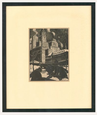 A striking illustrative print by the collectable English/American artist Clare Leighton (1898-1989). Taken from the artist's original woodblock series and printed for publication. Smartly mount in a fine black frame. Unsigned. On paper.Condition