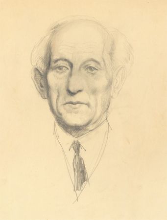 A fine study of an older gentleman in a suit. The artist pays particular attention to the man's face, carefully capturing the fine lines and contours of his eyes and jawline. The sketch turns looser in his suit, with more expressive markings used to depict his tie. Signed to the upper right. On paper.Condition