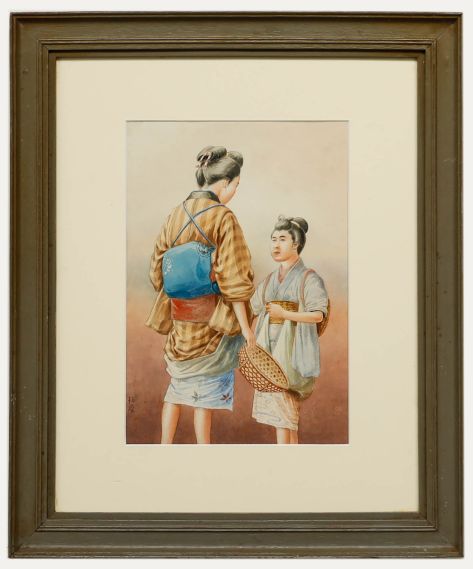 Japanese School Mid 20th Century Watercolour - Mother and Daughter