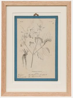 Original mid 19th century botanical lithograph depicting the species, Chelidonium majus (Greater celandine). Hand inscribed with Latin notations to the lower margin and presented in a contemporary solid oak frame.Condition