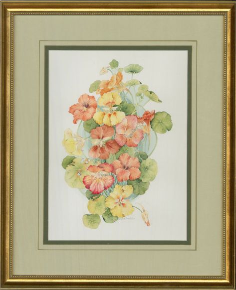 This delightful study of colourful orchids are delicately painted in soft watercolours. Signed to the lower right. On wove.Condition